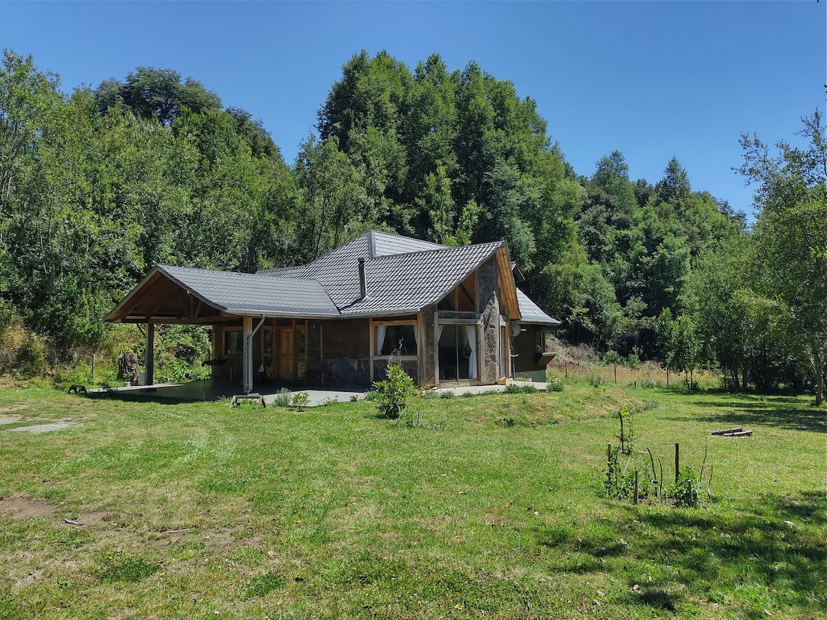 Moderna cabaña en un entorno natural, cinco mil m2 de pasto, un arroyo, 2 grandes sauces de agradable sombra, y un pequeño bosque de coihues y robles. La casa cuenta con un estar-comedor y cocina integrada, 2 dormitorios, cada uno con baño privado, cocina de combustión lenta, ventanales panorámicos. Ubicada a la altura del Km 13 del camino Villarrica Pucón, a 500 metros de este, muy cerca de los principales atractivos de la zona.
