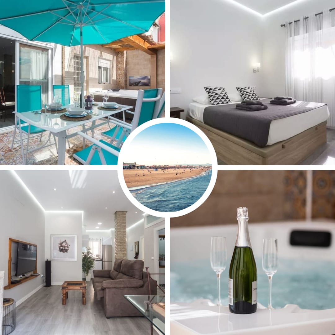Autocheck-in for a hassle-free arrival 🔑 Jacuzzi on the large terrace to relax 🛁🌅 2 comfortable Queen beds + sofa bed for 2 people 🛏️🛋️ Fully equipped kitchen 🍳🥘 Just 5 minutes walk from the beach 🏖️ Smart TV de 55" con Netflix, Prime Video, etc. para tu entretenimiento 📺 Parking available during the day 🚗 Pet friendly 🐾 Well connected to the city center 🚇 High-speed Wi-Fi 📶