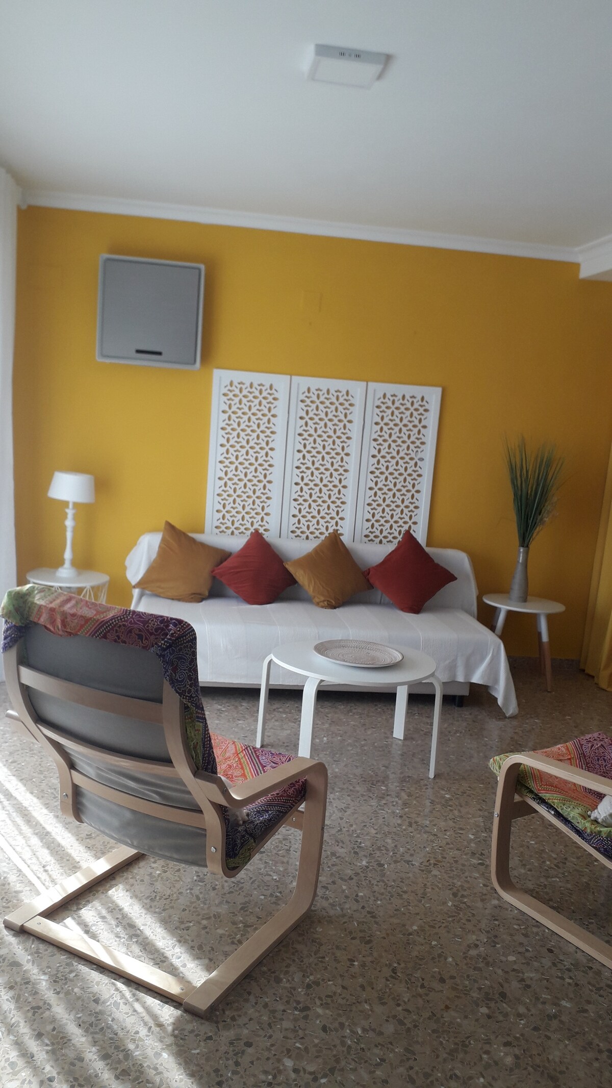 Ideal para 4 personas, con estancia de dos habitaciones, una abuhardillada, terraza exterior y baño, de manera que el disfrute y la privacidad están garantizados. El estudio dispone de dos terrazas privadas con Vistas al Mar y a la Playa Patacona. La Ciudad de las Artes y las Ciencias se encuentra a 5 km y el aeropuerto de Valencia, a 18 km del alojamiento.
