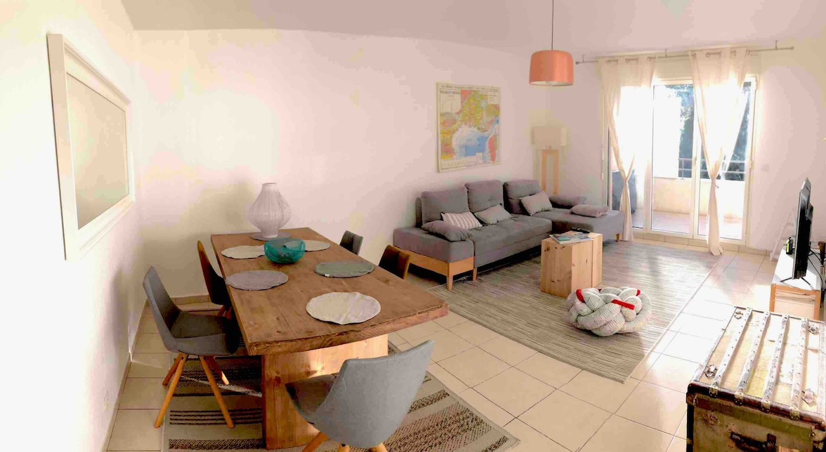 舒适的三室公寓,有空调,安静,带花园和游泳池