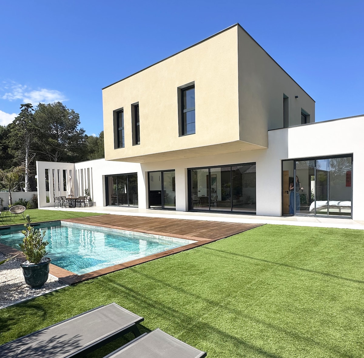 Villa Thautem, un coin paradisiaque dans un cadre calme et arboré. Cette maison est idéalement située dans le quartier prisé de Marseillan. Aux portes de la réserve naturelle du Bagnas, à moins de 4 kms des plages et du port de plaisance au cœur du village. Profitez de sa piscine californienne avec sa plage d'eau peu profonde pour vous relaxer et pour le plus grand bonheur des enfants. Bénéficiez d'une prestation de qualité d'une maison contemporaine neuve de 130 m2 sur un terrain de 680 m2.