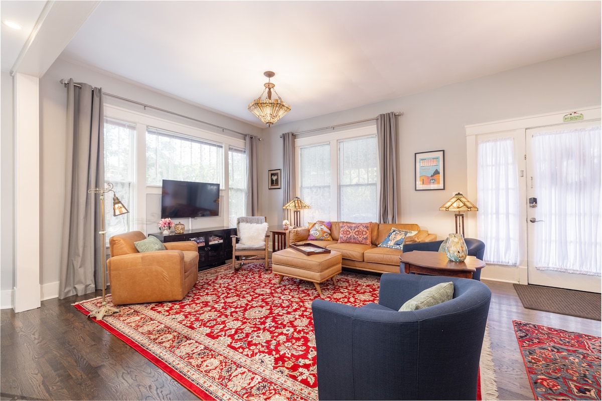 Take in the breathtaking downtown view from the private patio of this luxurious home. Boasting a minimalist aesthetic, each space exudes style from the hardwood floors and dark countertops to the expressive artwork and decorative pillows. The house is in a great location with a wide selection of dining options and shops nearby. Spend the day at Centennial Park or downtown at historic museums, breathtaking galleries, or exciting entertainment. Let your stress melt away! Permit #:2024036241