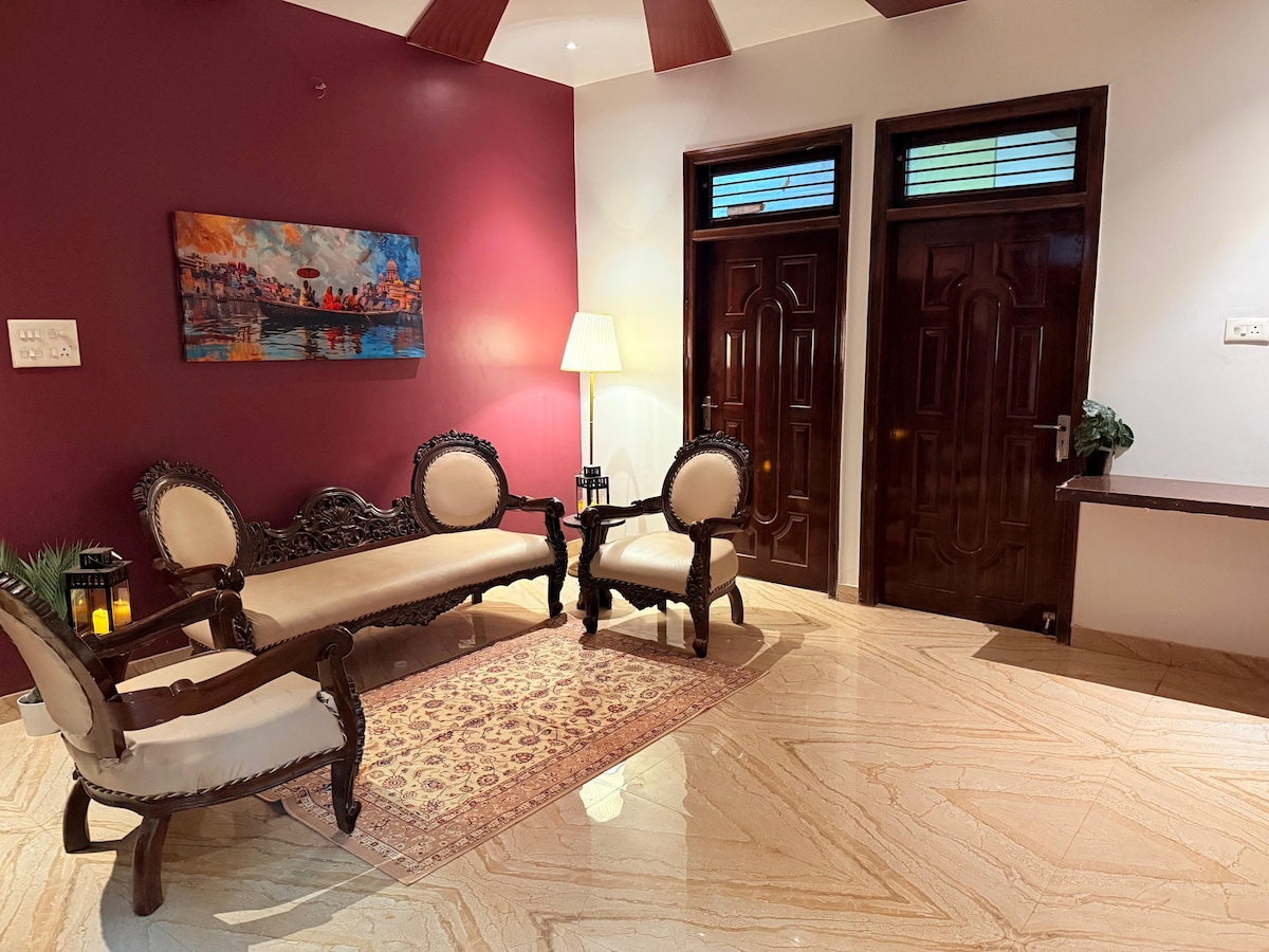 Lakshman Villa Suites – Near Vishwanath Temple & Ghat Entire apartment in Varanasi 4 guests · 2 bedrooms · 2 bathrooms !! Namaste and Jai Sri Ram !! Welcome to Lakshman Villa Suites! Our modern apartment is perfect for a comfortable stay in the heart of Varanasi (Kashi). Located in a prime area, it offers easy access to major attractions: • Kashi Vishwanath Temple – 1 km • Varanasi Cantt Train Station – 4 km • BHU – 4 km • Dashashwamedh Ghat – 1 km Book now for a memorable experience!