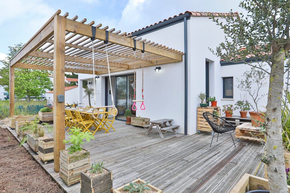 Venez passer des moments inoubliables à Brem-sur-Mer ! Bienvenue à la Bulle, maison classée 4 étoiles est l'endroit idéal pour des vacances mémorables sur la côte vendéenne, à proximité de la ville et de la plage. Cette spacieuse maison de construction récente avec étage offre tout le confort nécessaire pour une escapade réussie, avec son espace extérieur, profitez des repas en plein air et des moments de détente en famille ou entre amis.