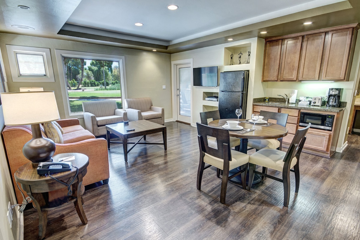 Secluded in North Scottsdale, this resort has top amenities that will make your getaway great. Enjoy the on-site golf course, driving range, or John Jacobs Golf School. Wyndham Orange Tree Resort |1BR/1BA King Bed Suite • Size: 740 - 740 • Kitchen: Mini • Baths: 1 • Accommodates: 4 Guests • Beds: Varies