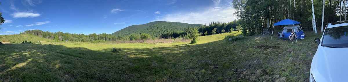 Scenic beauty of rural Vermont. Enjoy peaceful days and wonderful evenings by the fire. Features included: -Hot shower and sink! -Queen size memory foam mattress. -Front deck area with sitting chairs. -Metal fire ring with adjustable cooking grate. -Picnic table -Gravel road through rolling meadow to private camp site. -View of fields full of wildlife and the beaver pond. -Super clean porta-potty. * There are other sites on the property. You will see other campers from a distance.