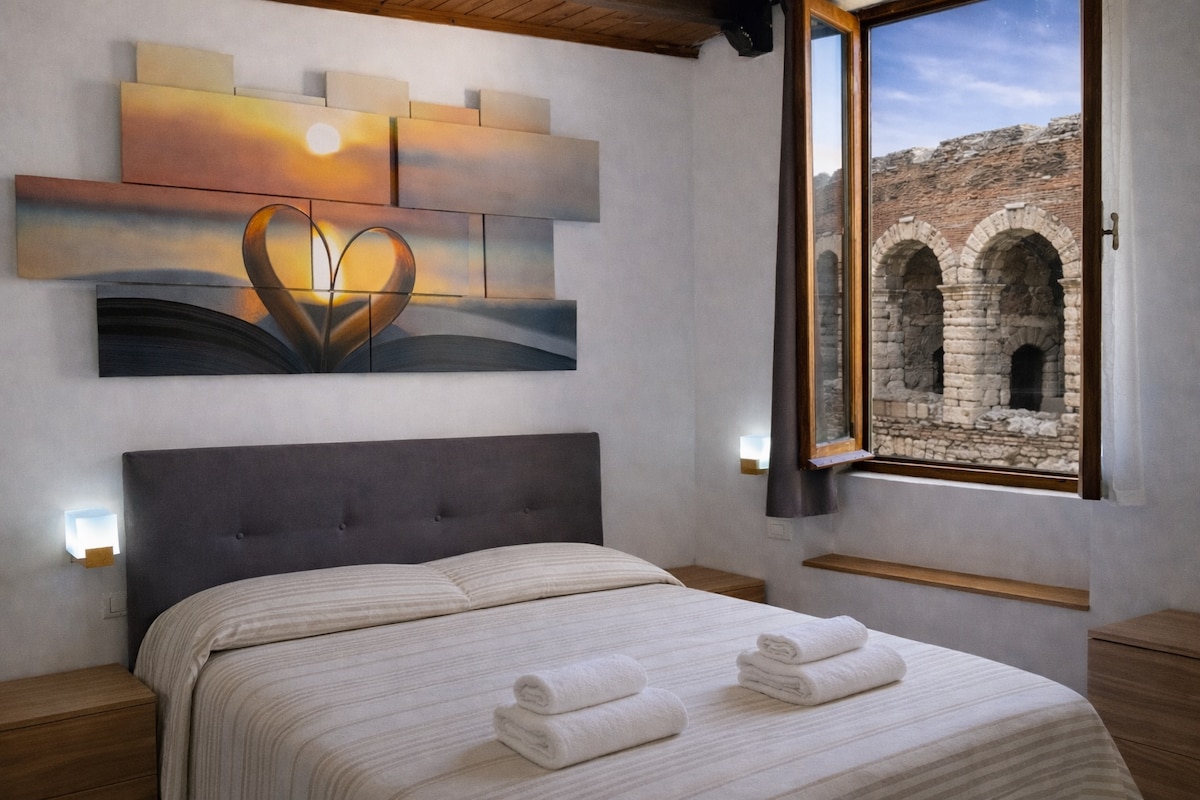 “Casa Caterina” is a recently renewed apartment located on the first floor of an historical building in the most authentic Verona: the heart of the city. Two steps far away from the Arena: the strategic and comfortable location of the flat allows to know deeply the history and the art that our beautiful city has to offer, making you feel like “There is no world without Verona walls”.