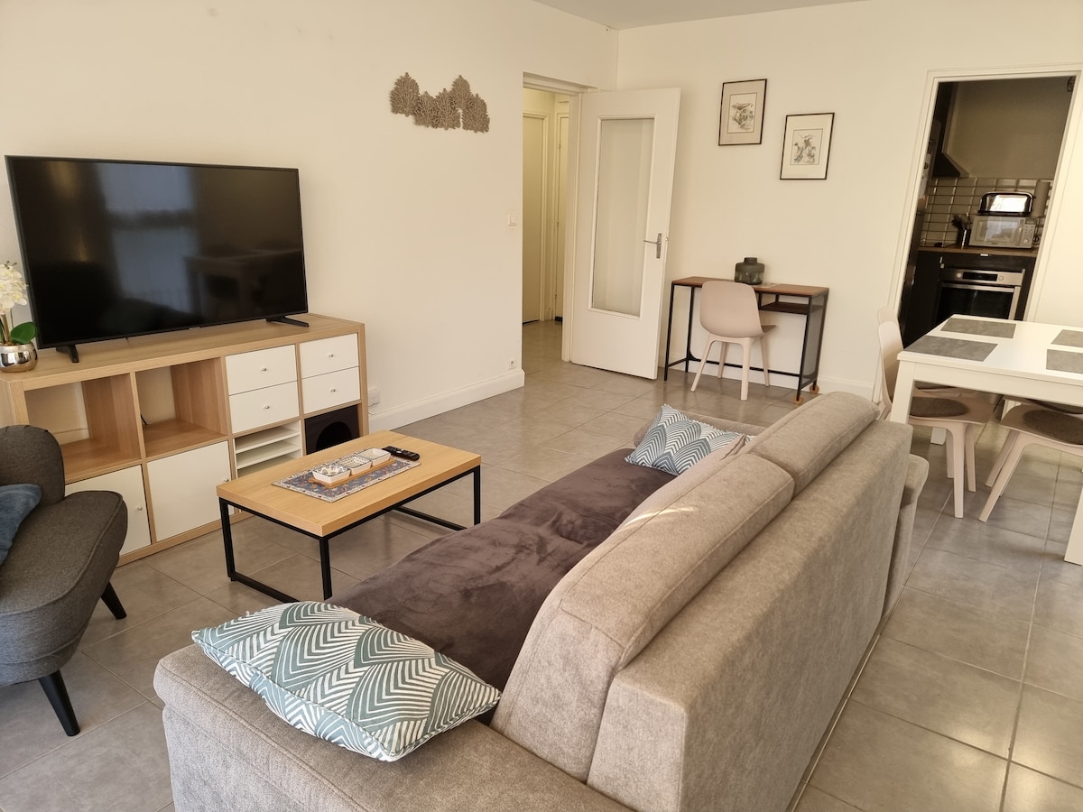 Studio de 16m² comprenant une salle d'eau et un Wc séparé, kitchenette avec frigo freezer, 2 plaques électriques, combi micro-onde / four grille. Tv Connectée avec Netflix Gratuit. Machine DolceGusto (thé, café). 2 Terrasses avec transat, et Barbecue Gaz Gratuit. Machine à laver en libre service a 5€. Studio non fumeur. Possibilité de bail mobilité (etudiants, etc... max 10mois)