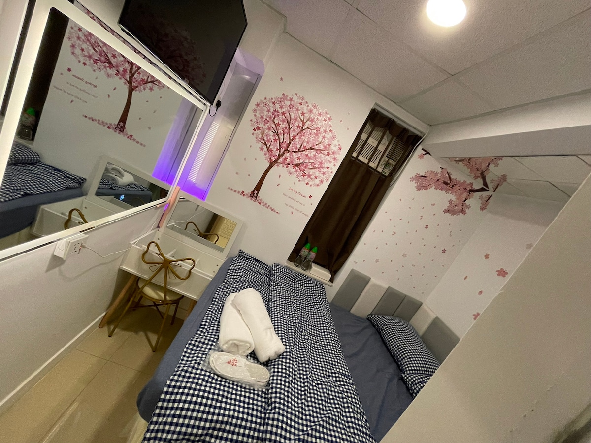 It is a cozy and comfortable room that can accommodate two people. The room is furnished with two single beds, and a study desk. There is a large window that lets in plenty of natural light. The en suite bathroom is equipped with a shower, toilet .This room is ideal for two friends or siblings traveling together who would like an affordable private space to stay.地點優越,前往熱門商店和餐廳非常便捷。