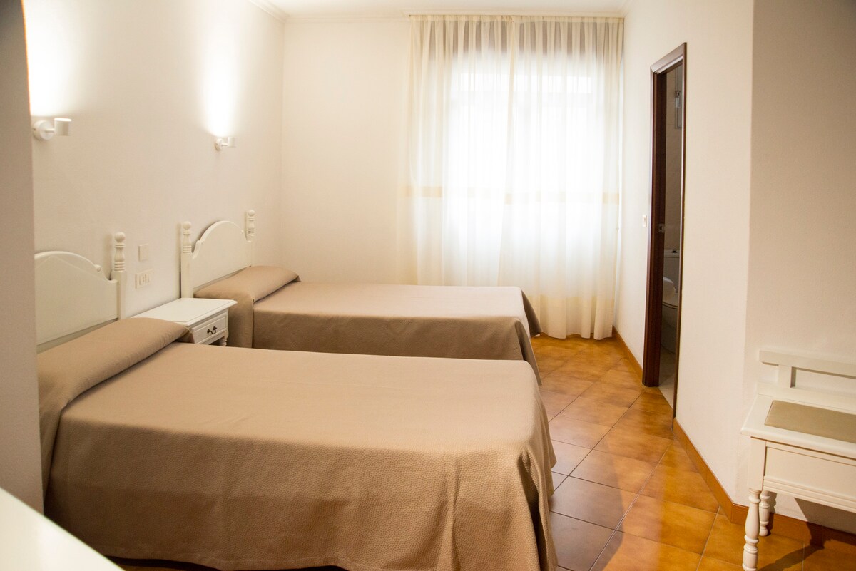 Habitación privada con dos camas y baño privado en el propio Camino Portugués . La habitación está a escasos metros de la estación de tren y de autobús así como del Centro de la ciudad y principales atráctivos turísticos. Restaurantes ,farmacia , supermercado.....todo lo que puedes necesitar lo tenemos en las inmediaciones 😊