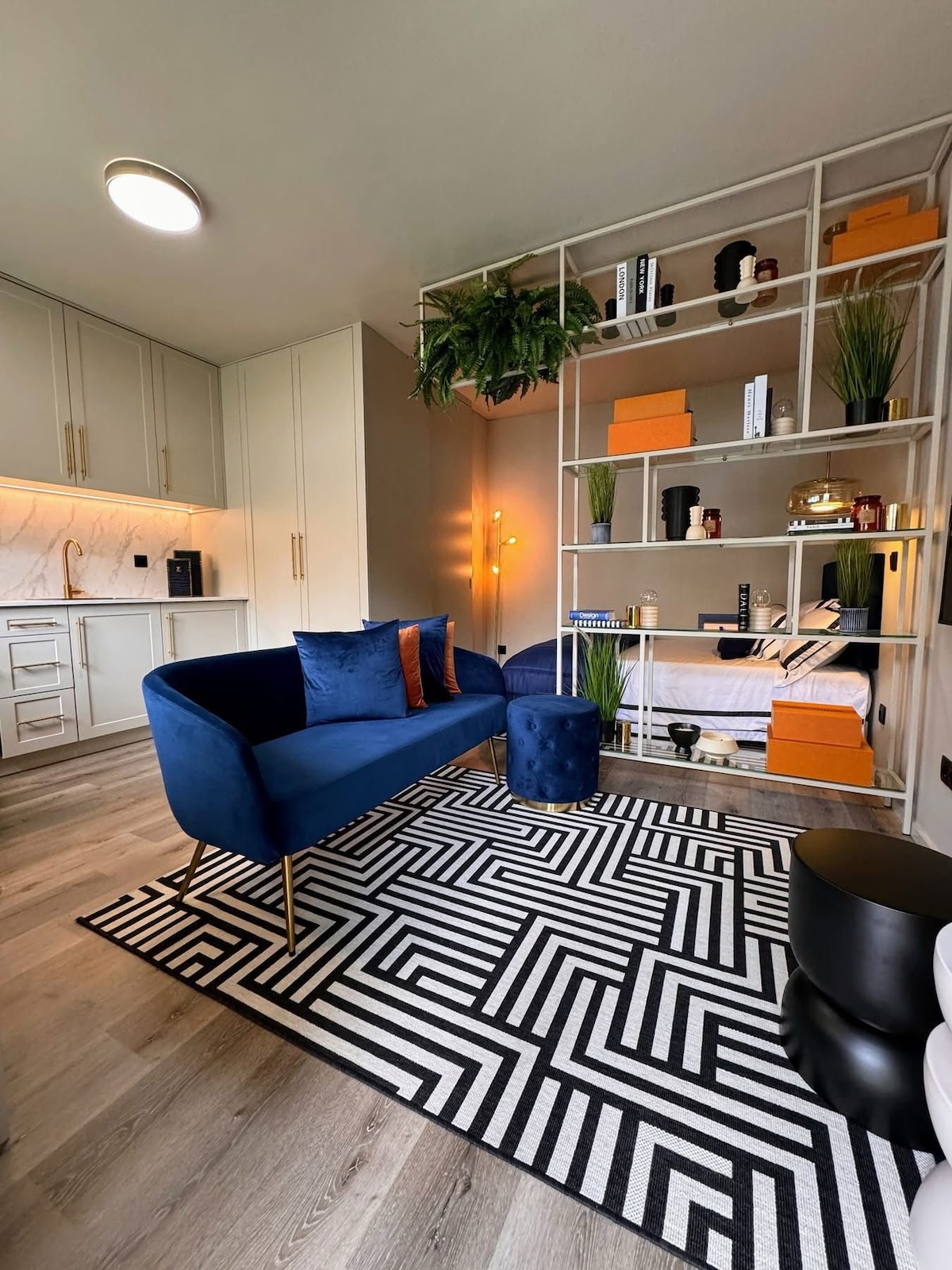 This is a space where comfort and welfare of the guests was thought to detail. The kitchen and the room are open plan and has a full bathroom with heated towel rail. All furniture and textiles adhere to a high standard of quality in order to achieve a modern but cozy place. The water heater is a 50-liter electric tank, along with a mini fridge, microwave, coffee maker, toaster, kettle, induction cook top and other kitchen essentials.