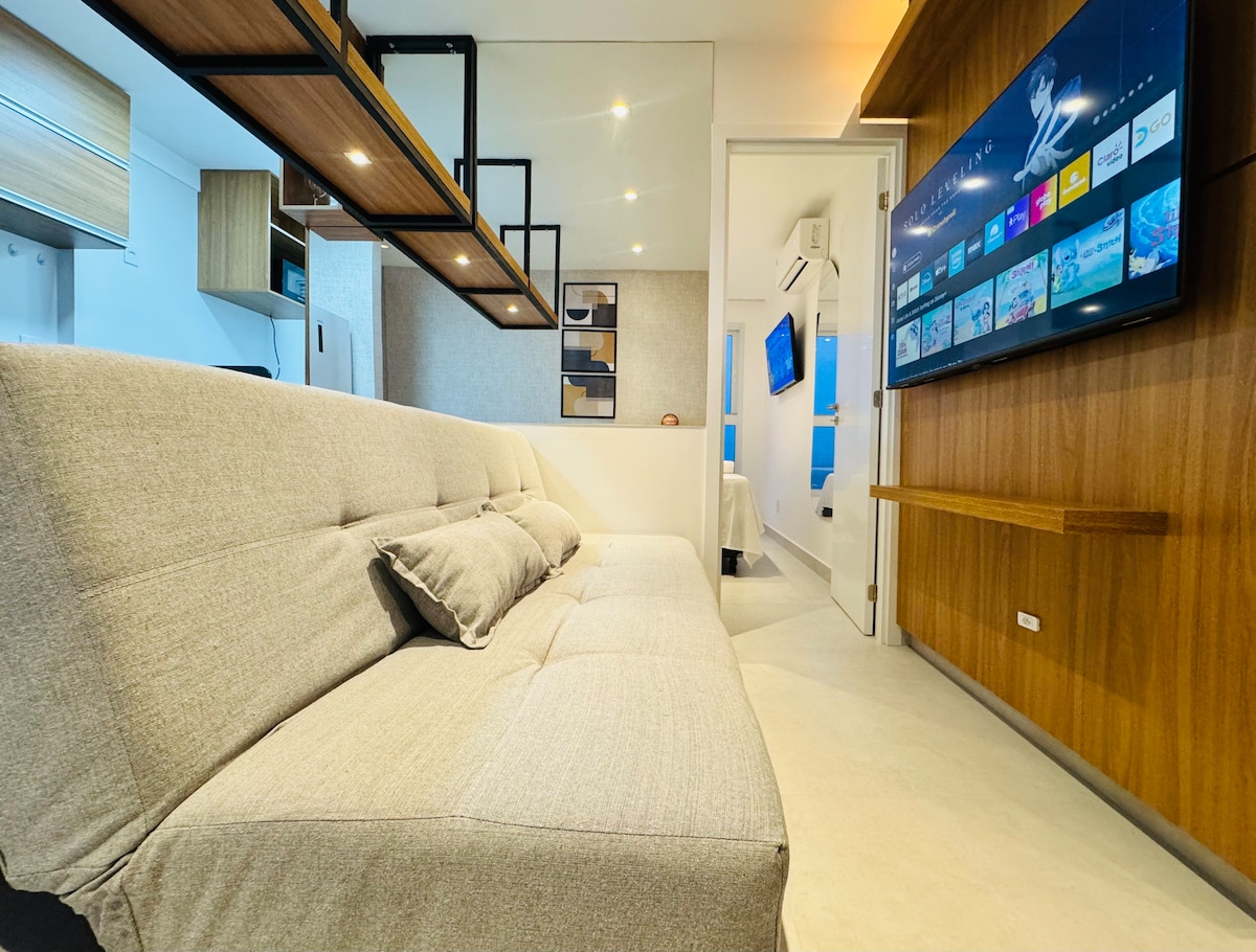 Viva uma experiência única de conforto e elegância, um espaço pensado para quem valoriza sofisticação, bem-estar e momentos inesquecíveis. 💦Piscina linda 🔥Sauna com acesso direto 🏋Academia completa 🛒Mini mercado no prédio 🏖A apenas 200m da praia Ideal para casais, viajantes solo ou pequenas famílias. Equipado com cama confortável, ar-condicionado, cozinha completa, Wi-Fi, TV e decoração charmosa. Prédio seguro com portaria 24h, próximo a mercados, farmácias, restaurantes e shoppings.