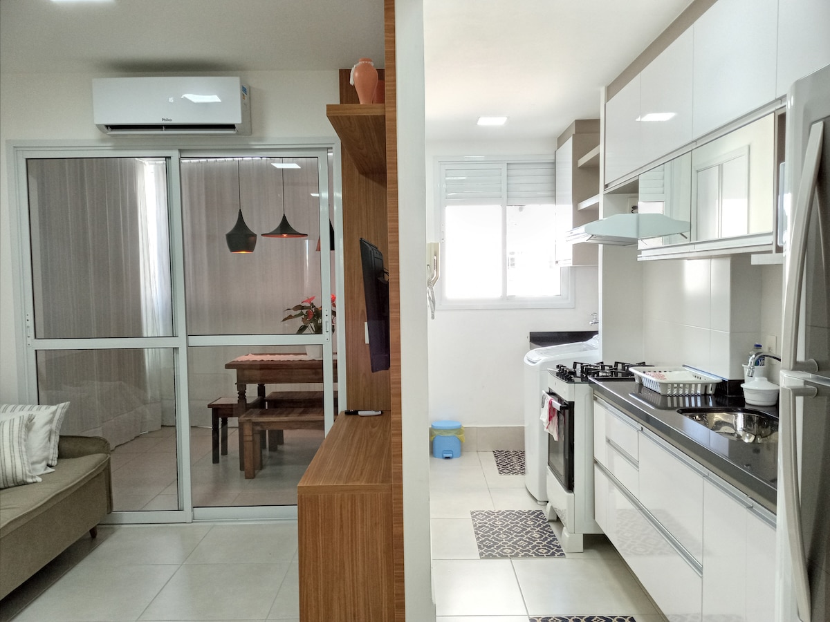 Total comfort and security: 2 bedrooms with smart air conditioning, large beds, Alexa, TV room, balcony with sea view and safety net, full kitchen, water purifier, washing machine, wifi, covered garage. Important: check-in: after 5pm checkout: until 12pm The building is located opposite the beach, close to everything: bars, pharmacy, bakery, supermarket, hospital, shopping mall, banks, etc... It has bed linen, soap, bath towels, safe. READ RULES