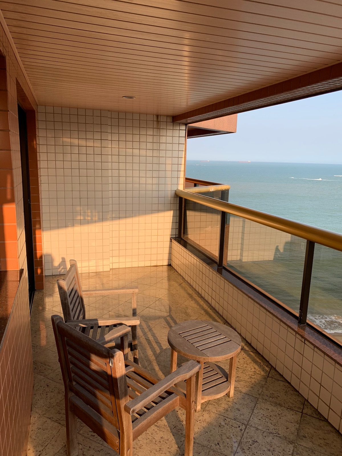 Apto. tipo loft, em prédio em frente ao mar e da pça dos namorados. Na cobertura, piscina, sauna e deck com vista maravilhosa. Ar condicionado split, TV a cabo, Wifi Perto de ótimos restaurantes, padarias gourmet, barzinhos, supermercado, e a dez minutos do aeroporto de Vitoria, cinco minutos do centro de convenções e quinze minutos do centro de Vitória. Garagem coberta incluso na diária. Portaria/recepção 24 hs.