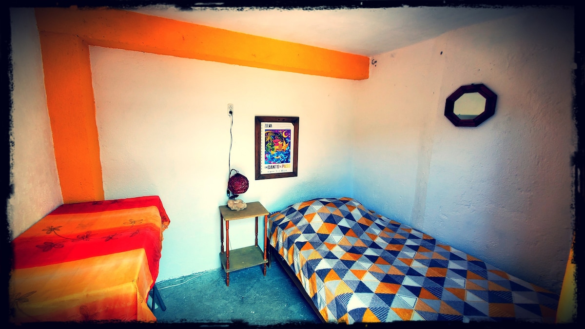 Luminosa habitación avant-garde, con baño privado, en El nuevo barrio de moda: Santa María la Ribera. Viva una experiencia entre la tradición y la vanguardia, en una céntrica zona llena de color y vida. A 10 minutos de la estación Metro, y a 3 estaciones de Bellas Artes. La habitación es de muros altos y con un gran ventanal a un típico patio mexicano lleno de murales e historia. La casa ha sido catalogada en el más alto grado, por su gran valor artístico. La habitación es muy silenciosa.