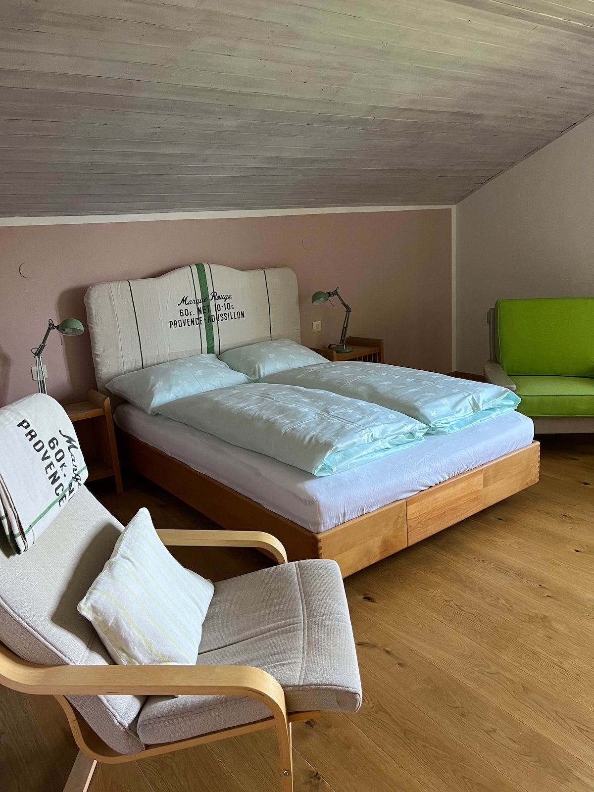 Gemütliche Wohnung im 1. Stock für bis zu 6 Personen (60 m²) mit schönem Balkon und herrlichem Seeblick. Die Wohnung wurde kürzlich renoviert. Die Wohnung ist praktisch aufgeteilt mit einer Wohnküche, einem Badezimmer, einem separaten Gäste WC und zwei Schlafzimmern. Jeweils mit modernem Boxspringbetten, Kleiderschrank, Spiegel und Flat-TV. Ein Schlafzimmer verfügt zusätzlich über ein Stockbett. Zwei Parkplätze und ein Raum für ihre Sportgeräte wie z. B. Fahrräder oder Ski sind vorhanden.