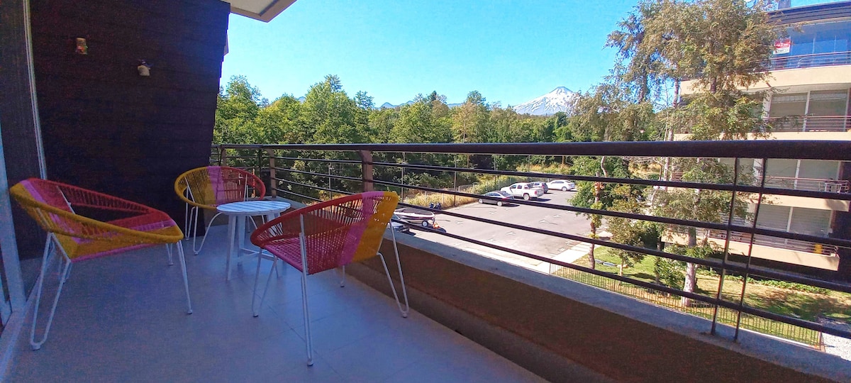 Cozy one-bedroom apartment with en-suite bathroom, living-dining area, and open kitchen, located in a private condo with beautiful gardens. Perfect for 2 guests. Enjoy: 🏊♂️ Pool suitable for kids and adults 🏰 Playground for children 🌲 Club house 🧖♂️ Sauna and hot tub (extra fee) 📍 Ideal location, close to: 🏘️ 5 min from downtown Pucón 🏞️ Beaches ⛷️ 25 min from the ski center ♨️ 40 min from Huife hot springs 🌿 25 min from botanical thermal park 🌄