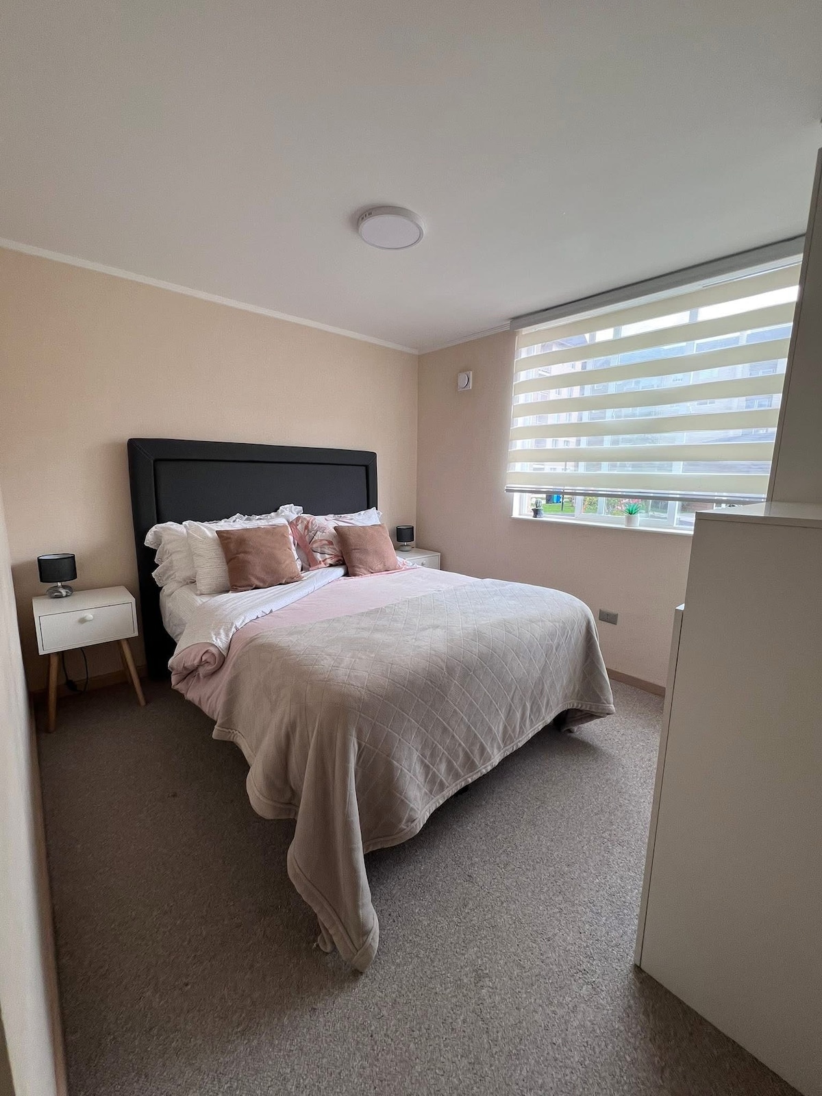Cada detalle del departamento fue pensado con mucho cariño para pasar unos días de descanso increíble. Completamente equipado y con insumos de primera. El depto tiene terraza cerrada, vista piscina, baño con showerdoor y estacionamiento techado. Ascensores. El condominio está en plena zona urbana a minutos del centro, cuenta con quincho y dos piscinas, una para niños. Depto en segundo piso, cercano a supermercados y otros lugares de interés. Ideal para 5 personas. Cuenta con diván cama extra.