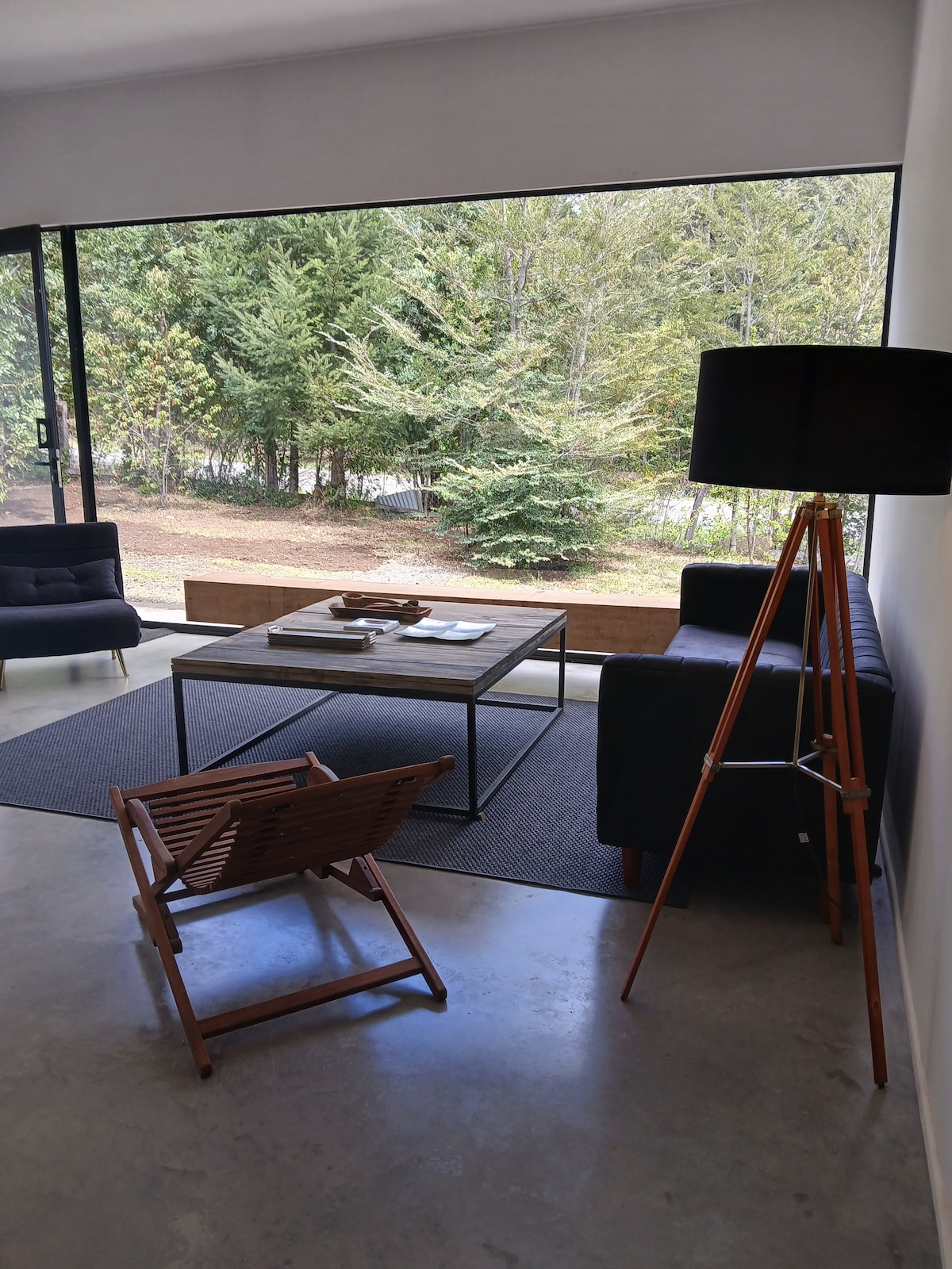 Refugio moderno entre el volcán y el lago, rodeado de bosque y luz natural. Su arquitectura minimalista y elegante invita al descanso y la conexión con la naturaleza. Grandes ventanales, espacios amplios y todo nuevo crean una atmósfera serena y confortable, ideal para desconectarse y disfrutar del equilibrio perfecto entre diseño, tranquilidad y paisaje. de una visita memorable cuando te quedes en este lugar único.