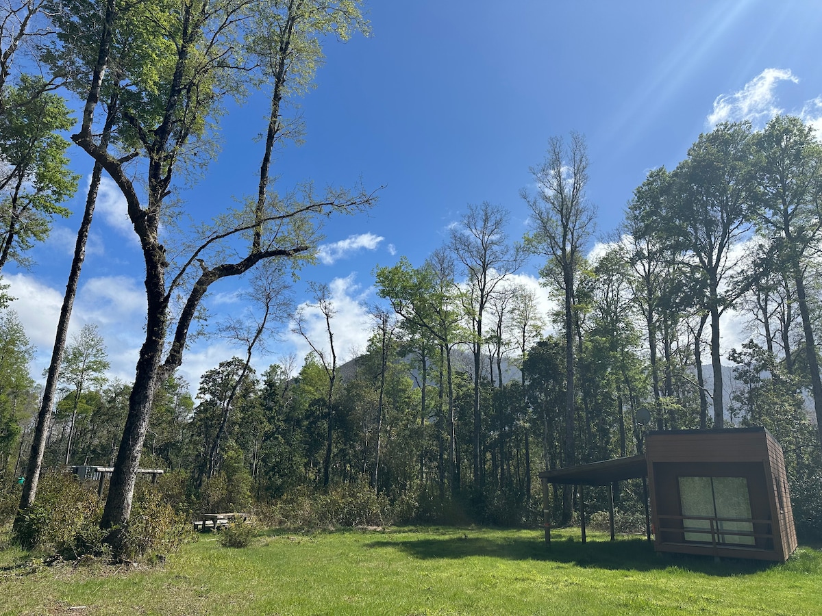 在本土树木之间的小屋。Lodge.namoncahue
