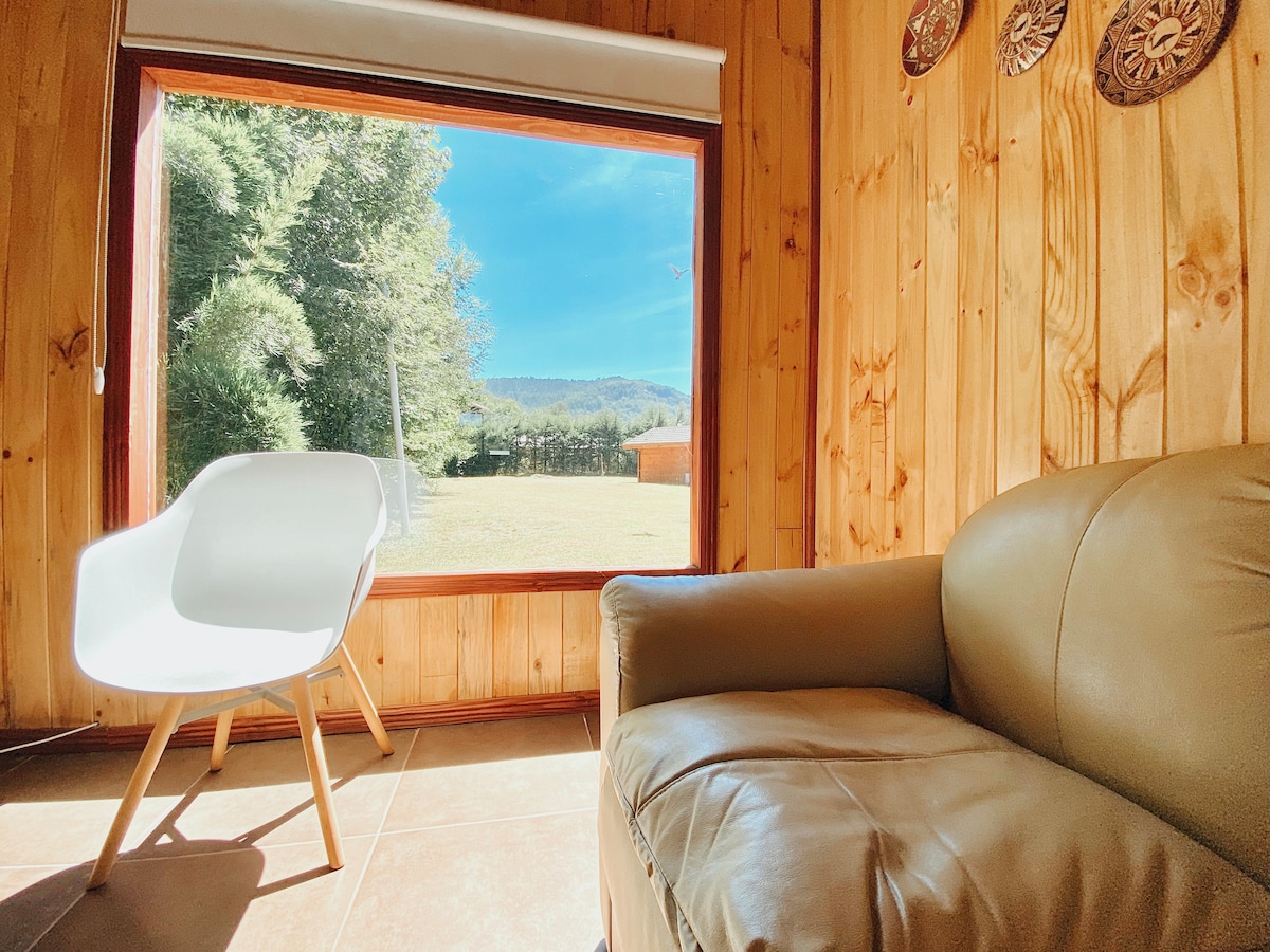 No querrás irte de este lugar tan único y encantador. Ven, disfruta y desconectate unos dias con una vista hermosa, rodeada de naturaleza y porsupuesto serán muy bien acogidos ❤️, contamos con TINAJA CALIENTE PRIVADA (con costo adicional), a minutos del centro, centros termales y parques nacionales villarrica y huerquehue, santuario el Cañi y diversos saltos de agua, contamos con servicio de lavandería, transporte, guía turístico certificado, tragos de la casa, tablas para picar y mucho más!