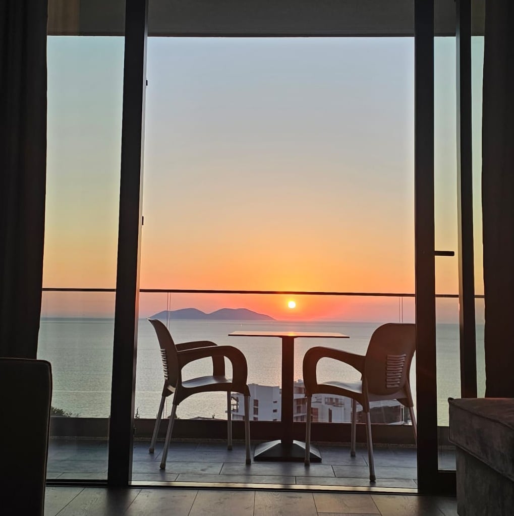 Sunny and panoramic apartment offers the most spectacular views of Vlora Bay. You can enjoy the stunning blues and greens of the sea and to feel the comfort and peace in the most coveted area.The residence where the house is located is newly built, the apartment total area is 120m2 and has two balconies overlooking the sea. One balcony belongs to the living area and the kitchen, while the other to the matrimonial room, the apartment has another room furnished with 2 single beds.
