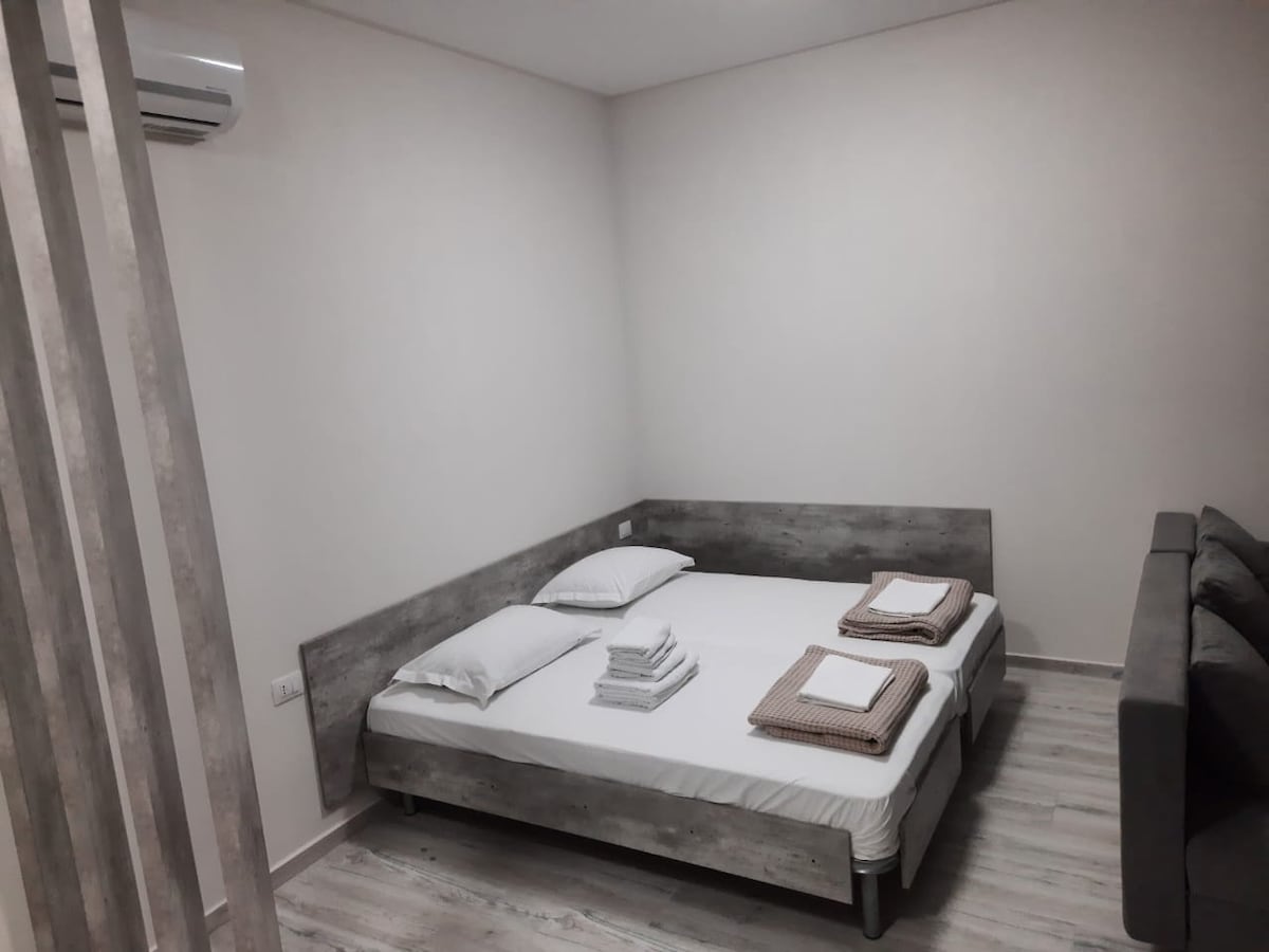 A lovely, newly renovated apartment with a capacity up to 3 people located near the portside of the beautiful Saranda. The apartment provides easy access to the city center- a 5 minute walk, a distance of 20m from some of the city's well-known beaches and also nearby ATMs, tourist information offices and public transport to some must-be destinations while visiting Saranda, such as Ksamil or the Archeological Park of Butrint.