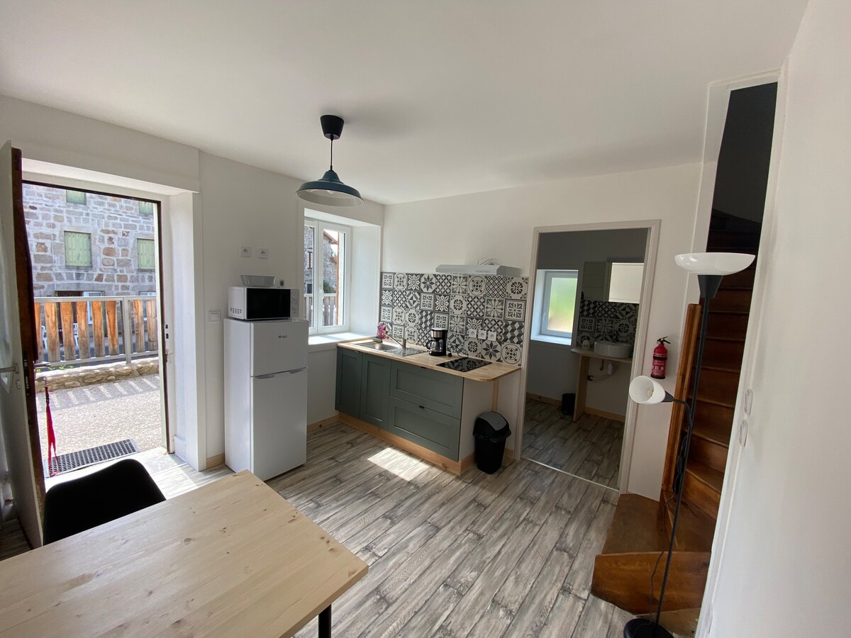 Maison 65 M² plein coeur du parc Naturel du Livradois Forez - Neuve - Terrasse 15 M² avec store Banne + Jardin 200 M² clos - Animal accepté (1) A l'étage : 1 Chambre avec Claustra - 15 M²- 1 Lit double 140 * 190 - Neuf au 15/06/25 1 Salle d'eau Salon : Cuisine équipée ( Cookeo ,couvercle fendu, mais fonctionne parfaitement ) Canapé Lit 2 Personnes 140x190 Appareil à raclette Linge fourni (Draps, Bain ) Pas de wifi TV-TNT SAT Etage Attention poutre Basse montée/descente + marche