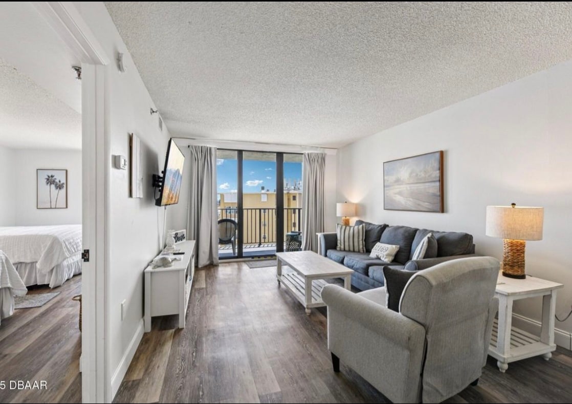NIGHTLY PRICE REDUCED due to Building renovations restricting our balcony usage. ON THE BEACH! Your very own cozy spacious studio with a private balcony* overlooking the Sand, Surf, and Sunrises. Daytona Shores is the serene beach of Daytona and is just a few short minutes away from a variety of activities and restaurants. Our 6th-floor unit is completely remodeled with free dedicated 45+Mbps WiFi, streaming channels, a full kitchenette, and free parking. *Unavailable beginning November