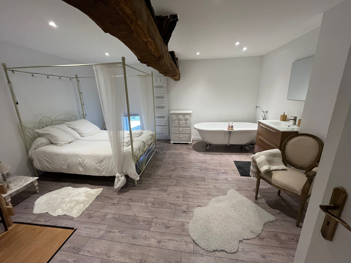 Ce logement indépendant a été conçu au RDC d'une belle grange en pierres située à côté de notre maison, face au château d'Allagnat. Une grande baie vitrée donne sur le jardin dont vous pouvez profiter. Au cœur de la Chaîne des Puys, à l’orée d’une forêt connue pour sa magnifique hêtraie, Allagnat est dominé par son château médiéval et entouré de multiples chemins de randonnée. Calme et air pur y sont garantis. Arrivée autonome possible. Equipement bébé, draps & serviettes fournis.