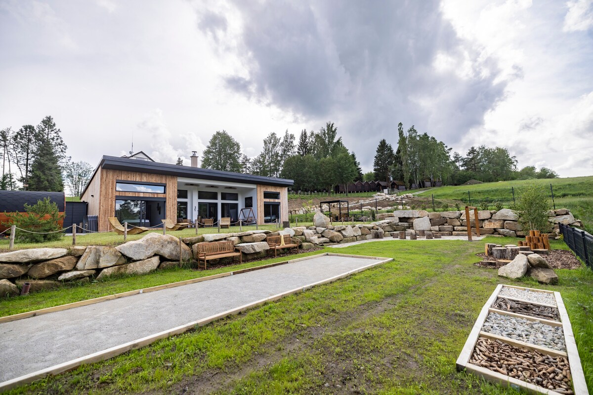 Útulná rybářská chatka u lesa a rybníka, kde čas plyne pomaleji. Ráno si užijete klidnou snídani na terase, projížďku na loďce, během dne se osvěžíte pod solární sprchou a odpočinete si v hamace s výhledem na západ slunce. Večer vás zahřeje praskající krb nebo ohniště pod širým nebem, zatímco nad hlavou tiše poletují netopýři. Ideální místo pro chvíle ticha a útěk do přírody.