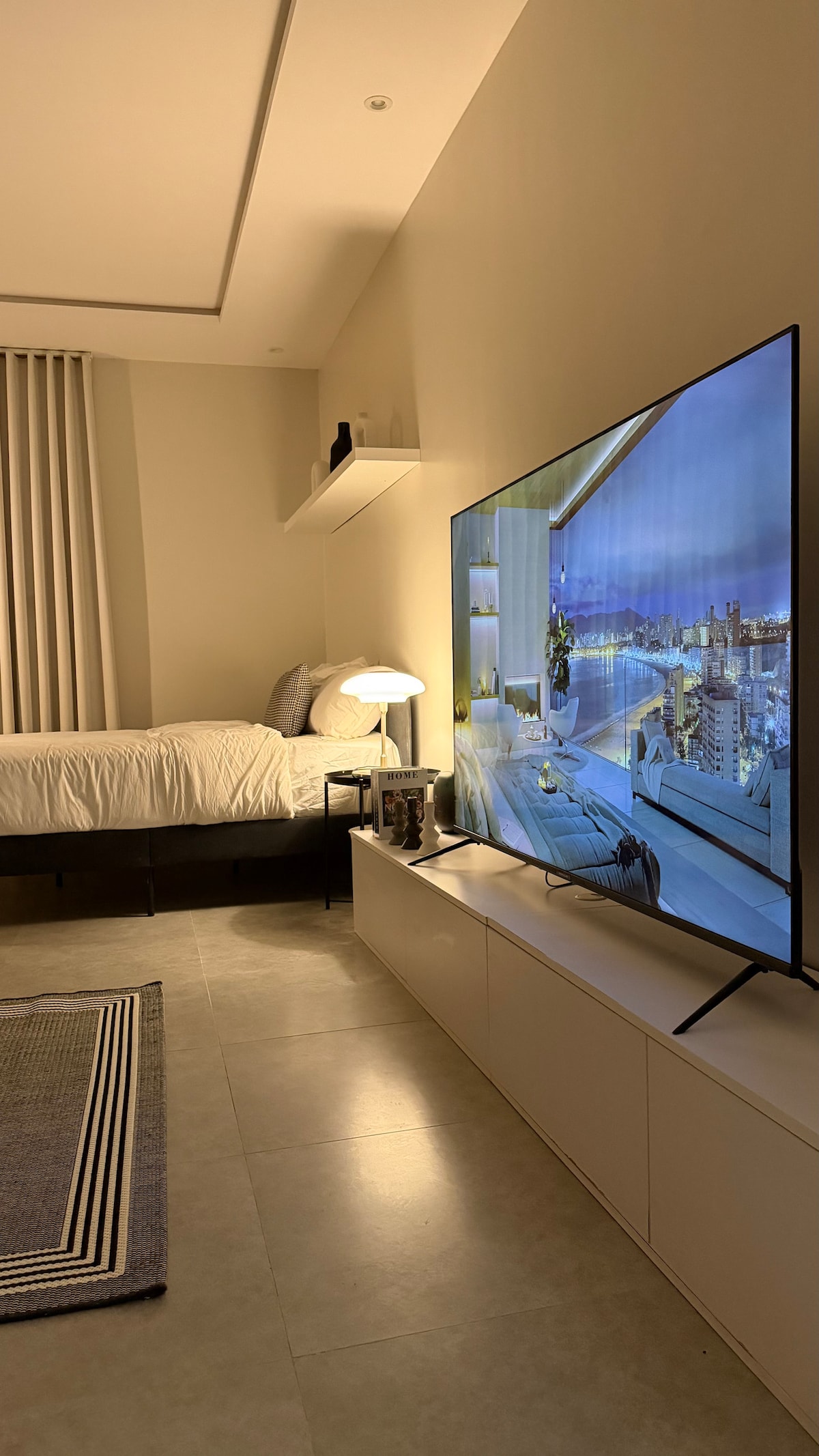 هذا المسكن الهادئ والأنيق. المصمم بنمط عصري وحديث يوفر لك كل ما تحتاجه للعيش براحة ورفاهية. تتألف الشقة من غرفة نوم مريحة وصالة معيشة واسعة، مما يوفر مساحة مثالية للراحة والاسترخاء بعد يوم طويل. حيث بأمكانكم قراءة الكتب والأستمتاع بمشاهدة الافلام على Netflix والقنوات المشفرة والمجانية بما في ذلك جميع القنوات الرياضية. كما يتميز موقع المسكن بسهولة الوصول إلى مختلف الخدمات والمرافق.