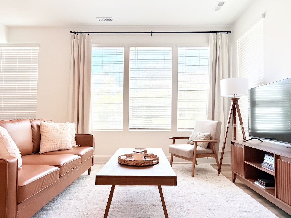 靠近市中心Cary 2 |加大双人床|巨大的75英寸电视
