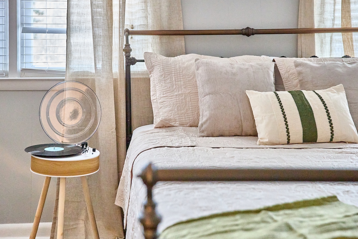Welcome! Our Boho suite is spacious, cozy, and private with gigabit fiber internet. Private entry, too! In the living room, you can watch Netflix on TV or work at the desk. Then when it's time for sleep, you can move to the bedroom, shut the barn door, and curl up in bed. Wake up refreshed in the morning with our coffee station (Keurig, fridge, & microwave). We're located in a safe, quiet neighborhood that's a short drive to anywhere in the Triangle. We'd love to host you!