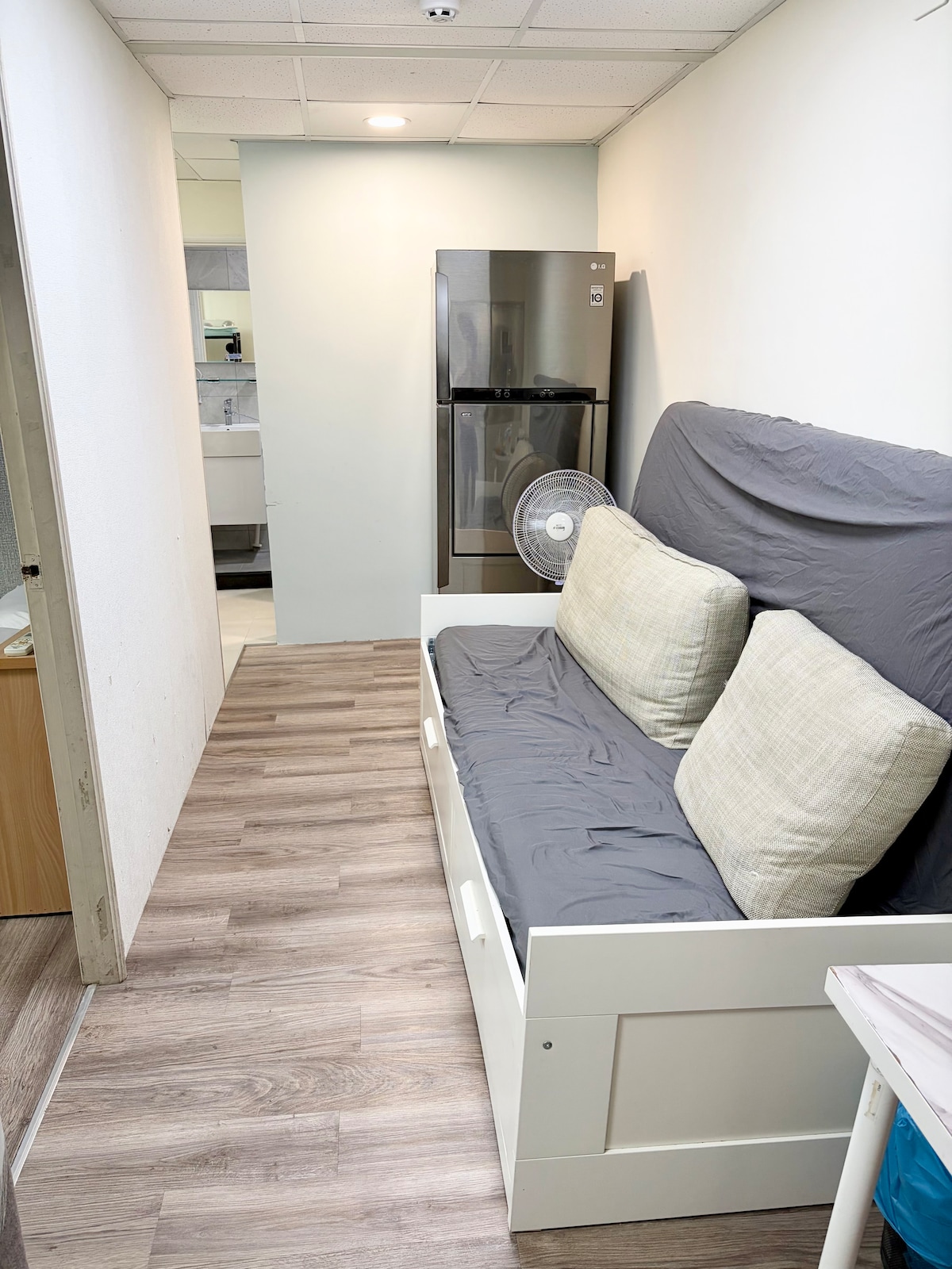 室內的灰白主色,配搭北美木紋銅色傢俱及家飾, 用心為您的居住空間提供沈靜優雅的感覺。日韓系電器的選用,不論是無線充電藍牙喇叭,大螢幕伸縮高清電視,都能滿足您對影音效果的要求。房源位於高樓內縮樓層,阻絕不必要的噪音並滿足您對景觀,安靜及隱私的要求。大樓並配有全天候警衛,住戶專屬電梯,公用大露台,以及地下收費停車場, 位處西門町核心路段,無論搭乘捷運或自駕都非常方便。Earth tone- based interior design offers warming, calm, healing and delighted atmosphere. Room facilities, including double bed, en- suite bathroom with shower enclosure, air conditioning, smart 4K TV with movies/Netflix, WIFI internet, cove lighting and music player with wireless connection & USB charger ports.