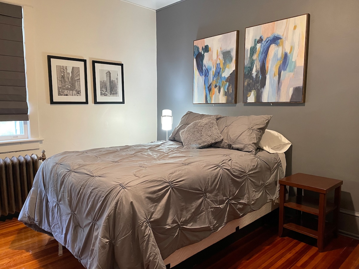 Breathe mountain air in a historic private bedroom, shared full bath, lounge, kitchen, library in a bucolic village bordering the 70k acre Delaware Water Gap National Park, Appalachian Trail, historic jazz club. Downstairs is the upscale Orange: Coffee. Art. Music. cafe with award winning coffee & French fare, art, & live music. Steps away: antiques, ice cream, concerts, hiking, biking, canoeing, rafting. Short drive: farms, shopping, pubs, breweries, wineries, art galleries & wood fired pizza.