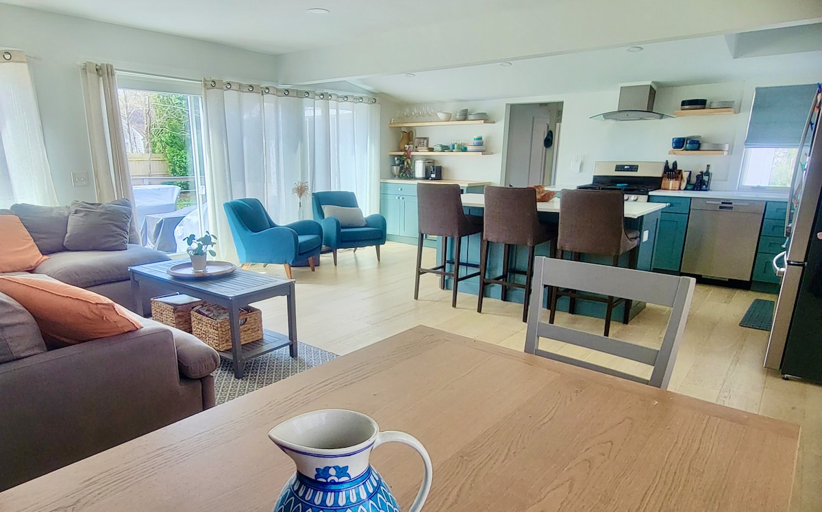 Nestled down a private road, enjoy a lovely waterfront home with sweeping 180 degree views of Potter’s Pond. Newly renovated and meticulously decorated. Unwind and relax on the back deck watching the extensive variety of birds and breathtaking sunsets. Spend your days exploring the pond in kayaks or try your hand at clamming, steps from the house. Located 1 mile from East Matunuck Beach, 1 mile from Tennis, Pickleball and Basketball courts. Walking distance to the renowned Matunuck Oyster Bar.