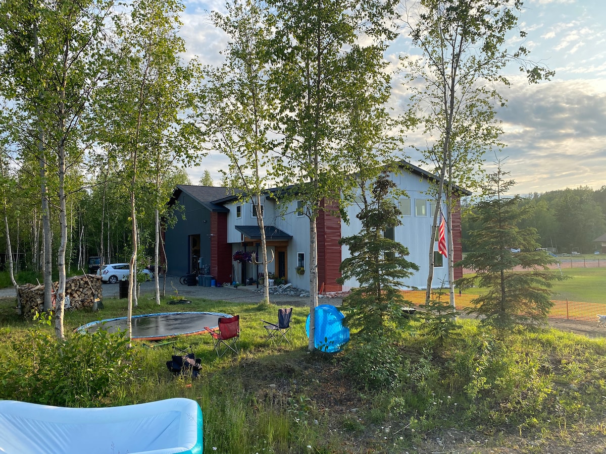 New Build, May 2022. Centrally located. Close to shopping and hiking trails. Located in-between Palmer & Wasilla. 1 mile from Colony High School. This listing has a queen bed, & double futon couch. We can add an air mattress if needed and provide a pack-&-play for small children. Fully equipped kitchen and a washer/dryer in unit. Brandy and I are readily available for dinner suggestions, hiking trails, tourist destinations, etc. We love this town and Alaska and want you to love it too.