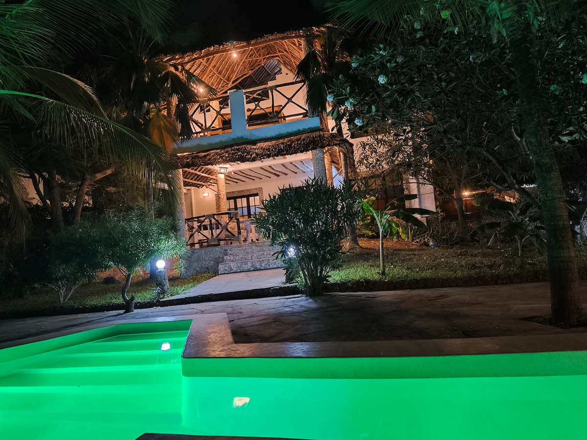 Traditional Swahili style house, stands on coral headland overlooking sea, beach, beautiful flowering gardens, private access to beach. Swimming pool recently installed, SEE HOUSE RULES Villa has 2 levels & views of Indian Ocean, private direct access to the beach, which stretches out either side, within the Marine Park. Includes 3 staff, cook, and daily room service, and gardener. Sleeps up to 10. Easily adapted and made comfortable to host smaller groups, by using just the upstairs bedrooms.