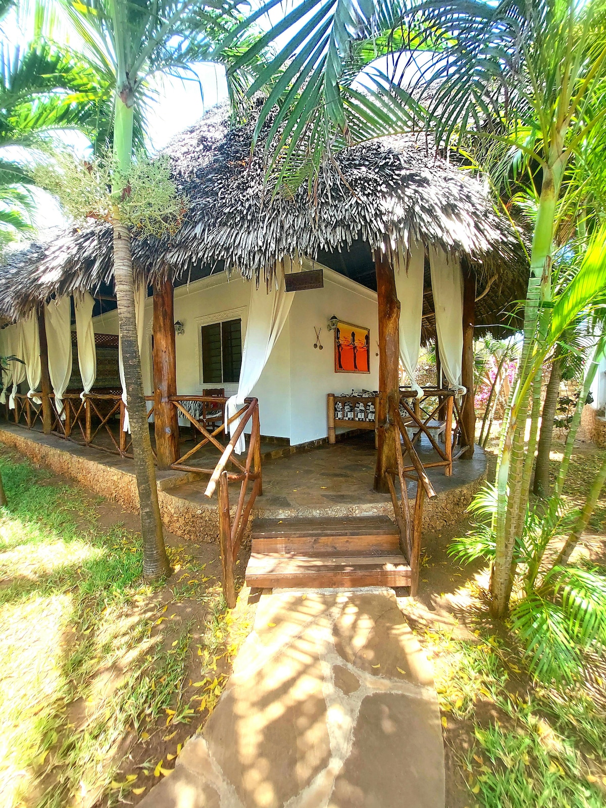 This charming, one-of-a-kind place is located just 5 mins walk from Jacaranda beach, 7kms north of Watamu. Kijiwe Villas consists of 2 double bedrooms downstairs, one room with 2 double beds and living room upstairs and a one-bedroom cottage. All rooms are en-suite. Set in a large lush garden with lots of outdoor seating. A perfect place to relax for a romantic getaway or enjoy with a group of friends. We also own a wonderful beach restaurant where you can enjoy a free sun bed.