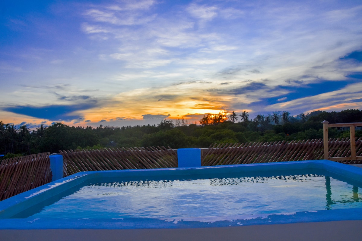 魔幻的4床员工瓦塔穆房源。泳池和景观