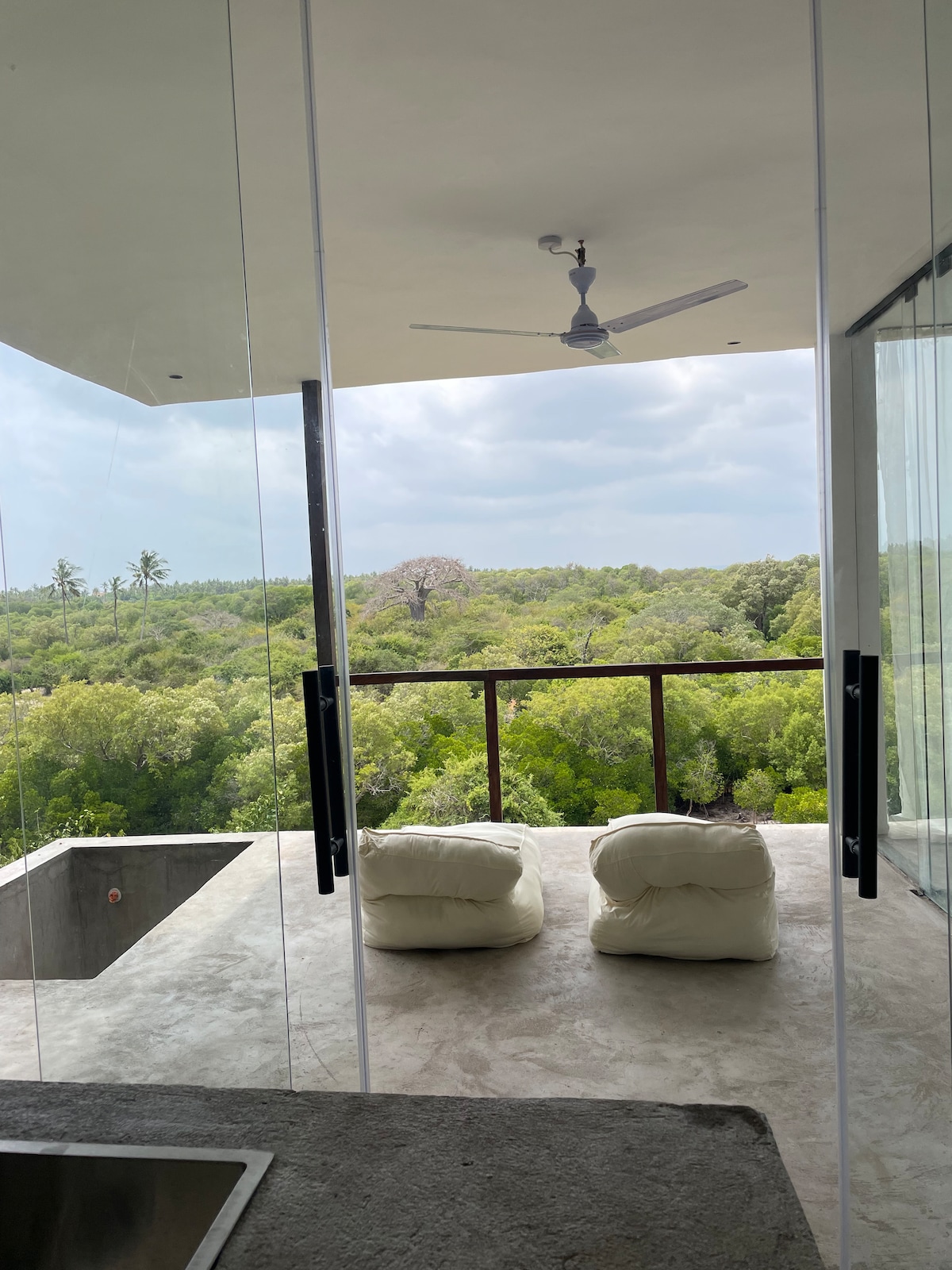 This is a light-filled studio set five metres above the ground, built into natural rock and surrounded by mangroves. The floor-to-ceiling glass makes you feel completely immersed in the forest and you wake up to birds, butterflies, and the sounds of nature all around you. At night, the stars are incredible. It's a unique and calm space, designed as a private retreat for couples, solo travellers, or anyone wanting a truly unique stay in Watamu. :) The studio is self-catering.