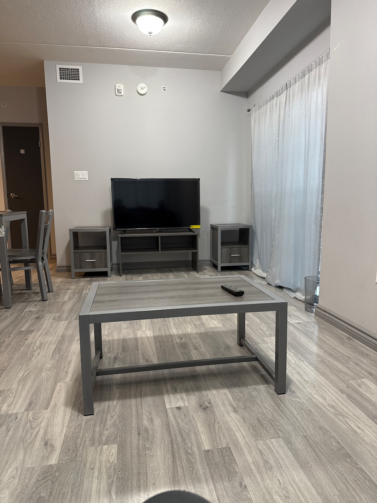 Modern and Sophisticated 1+1 apartment in the heart of Kitchener Downtown and Uptown Waterloo. It features modern furniture, a fully equipped kitchen, and a balcony with stunning sunset views. Enjoy exclusive amenities like a bowling alley, spa, pool table, and hydro swimming pool. The apartment comfortably sleeps 3 with two cozy beds. Located steps from top bars and restaurants, this apartment offers a blend of luxury and convenience. Perfect for business or leisure stays.