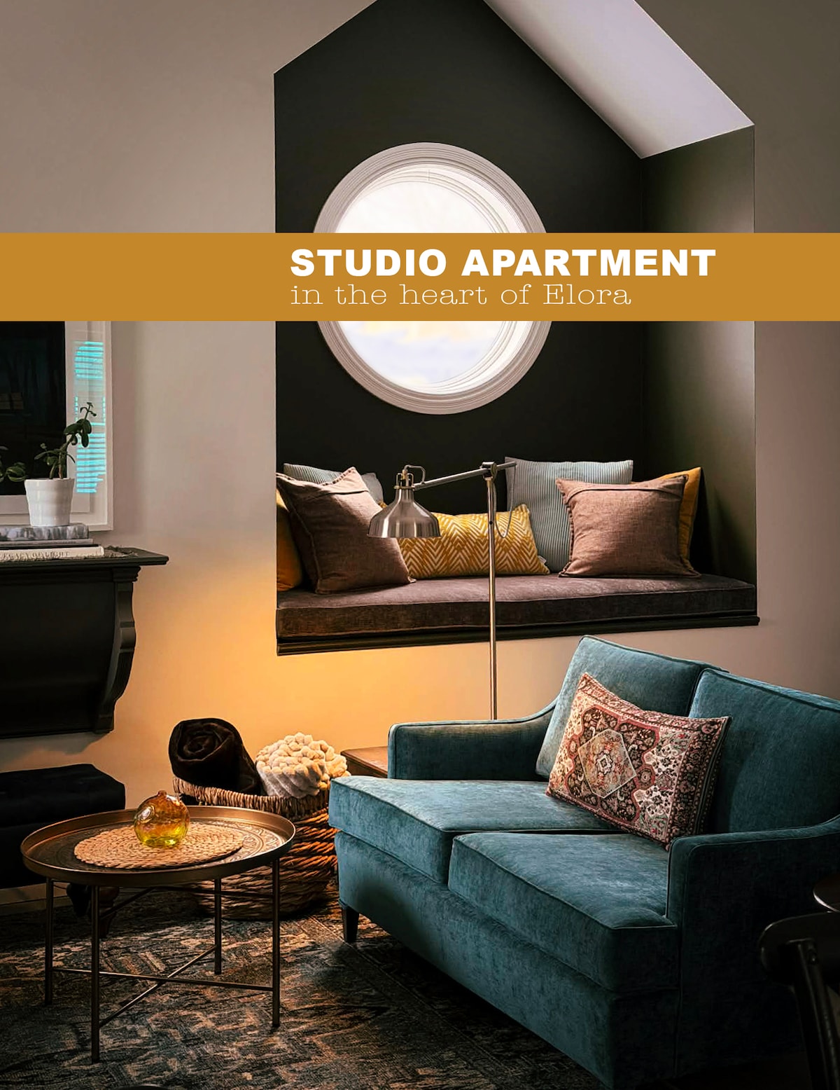 Located 3 short blocks from the Elora Mill this charming studio apartment is located in the heart of Elora, across from Bissell Park. The Studio Apartment is in a separate, private building at the back of the property which has a private entrance, private front deck and private garden area along with a parking spot for one vehicle. The wifi has recently been upgraded to the EERO mesh system to help connect you to work and leisure activities.