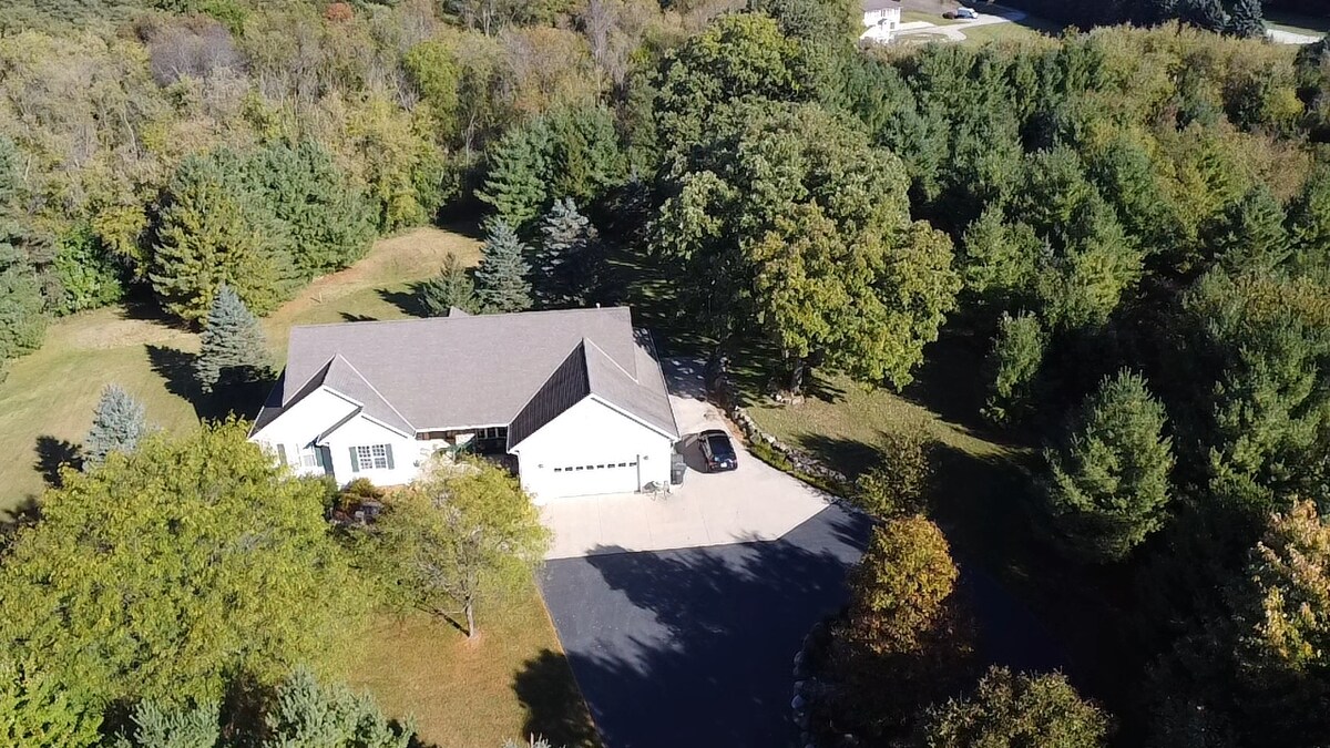 A cozy secluded retreat like being "up North" without having to go up North. Quiet private road, and quiet lake. Great swimming and fishing off the dock in this sandy bottom lake with clean spring fed water, and large grassy area for lawn games and relaxing. Great for families, ladies retreats, golf groups, or concert goers. Only 5 mins to grocery stores. Lots of space in the house, and lots of space for spending time outside on the deck or the dock or lawn by the lake. Feel free to inquire!