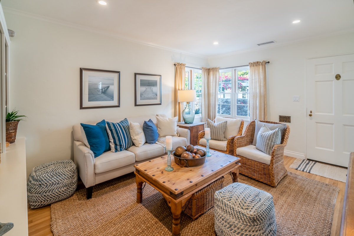 Named “Best Beach Cottage on the Mesa in Santa Barbara” by Condé Nast Traveler, this beachy retreat pairs comfort & style. Just a 5-minute walk to the beach & 10 minutes to downtown Santa Barbara, it offers the best of coastal living. Two king bedrooms plus a twin room make it ideal for families w/ luxe bedding & blackout shades. The backyard is an oasis with a firepit, grill, outdoor dining & lounge seating. Inside, enjoy 2 large smart TVs, high-end furnishings & a perfectly appointed kitchen.