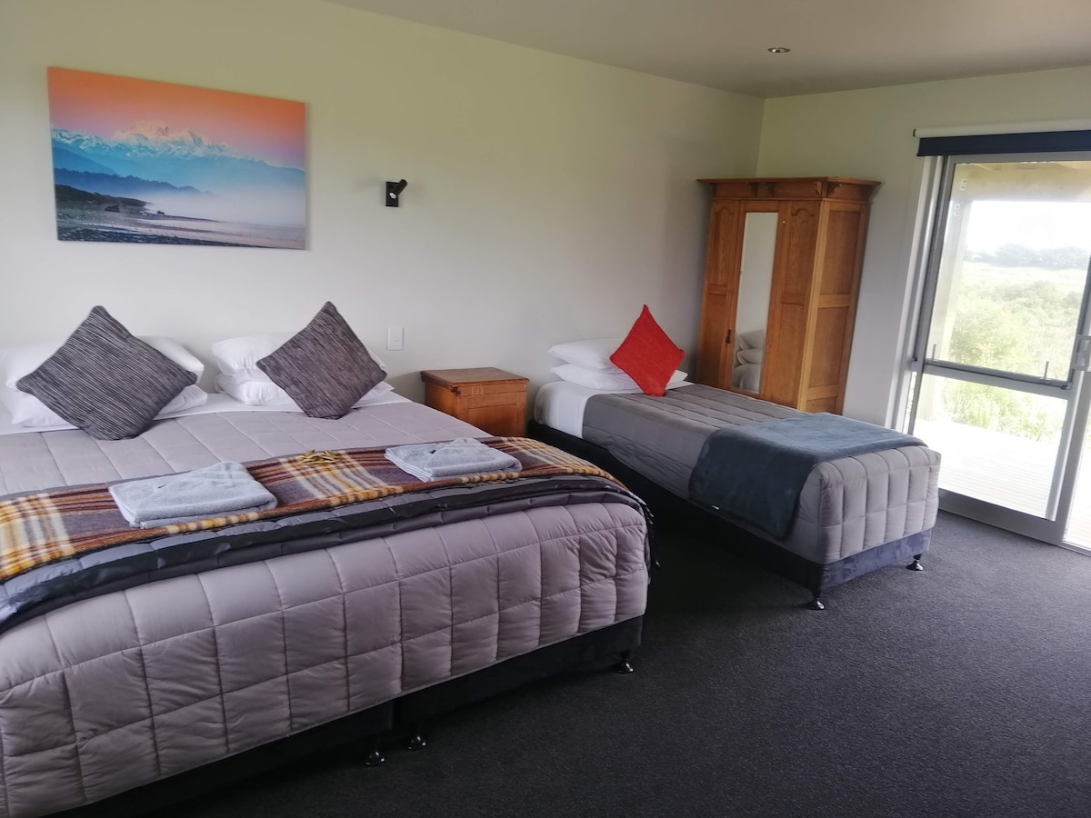 This stylish place is close to must-see destinations in central Hokitika - easy access walking to glow worms, town centre, beach front and local walking tracks. Your room is decorated with local craft and our gardens are proudly presented to let you relax after a busy day, whether it be beside the fish pond or out front admiring views of the Southern Alps. Dedicated guest lounge. 2nd bedroom with ensuite also available for extra charge based on availability.
