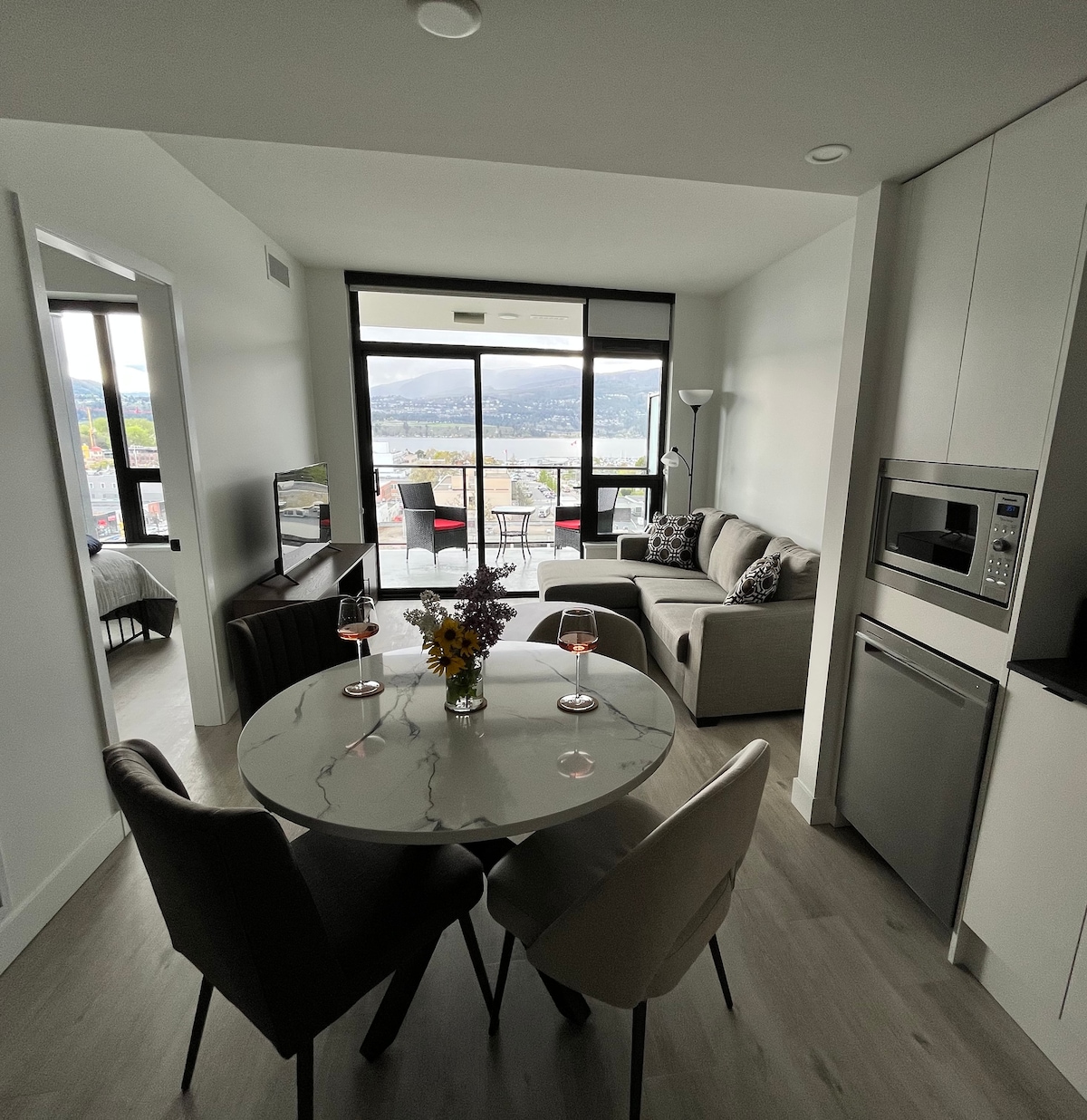 现代化的市中心单卧室公寓,可欣赏湖景