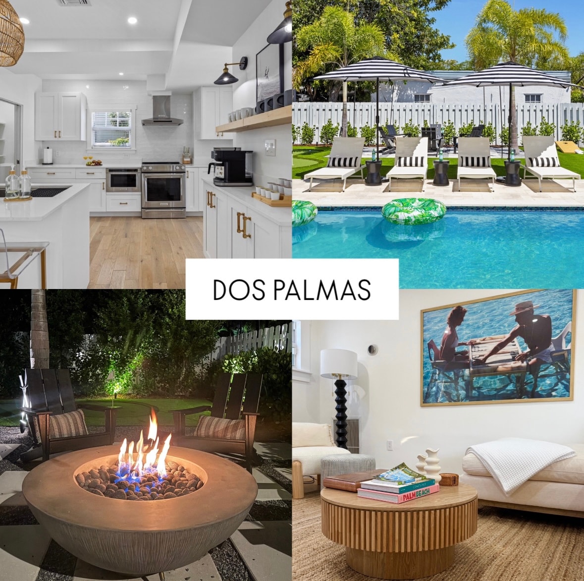 Dos Palmas is a newly remodeled and designed luxury short term rental. HIGHLIGHTS - Gourmet chefs’ kitchen - Bar area with built in wine cooler + drink fridge - Starbucks coffee + Tazo tea station - 3 Hole putting green with light up balls for night - Firepit with Adirondak seating - Saltwater pool + hot tub ($75/day) - 6 poolside lounge chairs with umbrellas - Poolside conversation seating - Outdoor dining area - Outdoor yard games - Stainless steel 4 burner gas grill