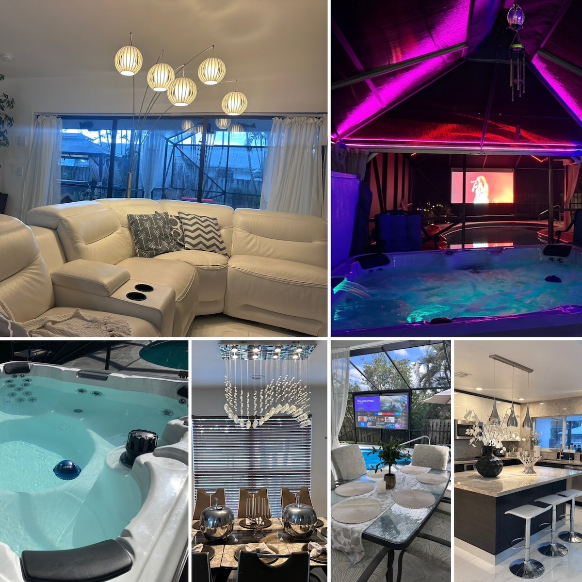 Entire spacious home in the heart of Boynton Beach! This unique and tropical designed home is perfect for your next vacation! You and your party will be closed to everything during your stay! This hidden gem has 5 bdrms and 4 baths that easily sleeps 12. The home has many amenities. Indoor features: game room with pool table, arcade and Wii. Outdoor entertainment features a heated pool with one-of-a-kind rain curtain & soaking tub, patio bar & BBQ grill, two tiki huts and miniature golf.
